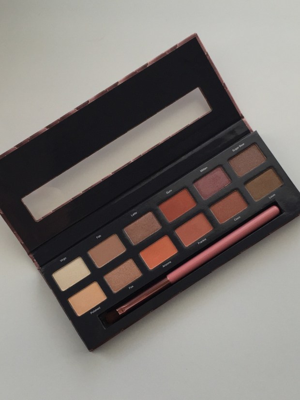 Now to be honest, I’d never watched her videos before. I searched out her channel after seeing the palette on Ulta’s website, and I was hooked. I loved her down-to-earth product reviews and tutorials, which made me want the palette even more. The only problem though, was that some of the reviews weren’t so good. People talked about lack of pigmentation, fallout, etc. I can overlook this–I feel like any time you read a lot of reviews of a single popular product they range from “no pigmentation” to “beautifully pigmented,” so I know that this has so much to do with our preference and frame of reference. (No, that was not supposed to rhyme.) But the palette is $20, which is a little higher than what I’d typically pay for a drugstore item, so I waffled on whether or not to buy this one. In the end, a combination of gorgeous warm tones and Ulta’s free gift (that promo ends today) sealed the deal, and I ordered the palette. I am so glad that I did. The colors are gorgeous, and even more importantly, I don’t have anything quite like it in my collection. It is a neutral palette, but instead of a range of browns, you get a range of burnt orange shades. They are all just a little bit smoky, which keeps them from being too intense for every day. The browns it does include are warm, and many have some light golden shimmer. There is a good mixture of matte and shimmer shades and it satisfies my requirement that the shades look different enough that I can create a variety of looks. It also comes with a brush that is great for packing on shadows, especially in the outer corner.
