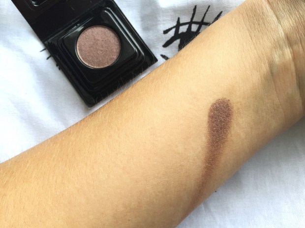 Next, I received a Make Up For Ever Artist Eyeshadow Single in I-544; I believe that shade is called Pink Granite. It is such a stunner–it looks taupe in the pan (and unfortunately in the image above), but on the lid is a pale pink/steely gray duochrome with an iridescent finish. I used it for a one shadow look: I placed it in the crease, packed it on the lid, and then sheered it out over the browbone. I loved the effect–it was such a simple makeup look but the color was just so interesting, unlike anything I have. It was nicely pigmented and stayed on all day.