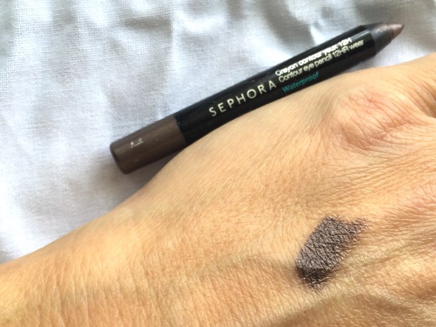 The next item in the box was a Sephora collection Contour Eye Pencil 12 hr Wear Waterproof. I received mine in Flirting Game, a shimmery gray-toned taupe shade. It was the perfect eyeliner to complement the Makeup For Ever eyeshadow. As it says, it is waterproof, and works like a gel liner–it glides on and does not budge throughout the day. They come in glitter, matte, and shimmer finishes–it looks as though Sephora has 25 different colors to choose from.