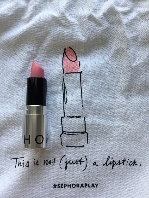 The lipstick itself is fine–a little waxy, but a nice cool pink. I would check out more colors in this line. It’s just the potential pattern this lipstick represents that has me concerned. I guess we’ll see in the next box if this continues!