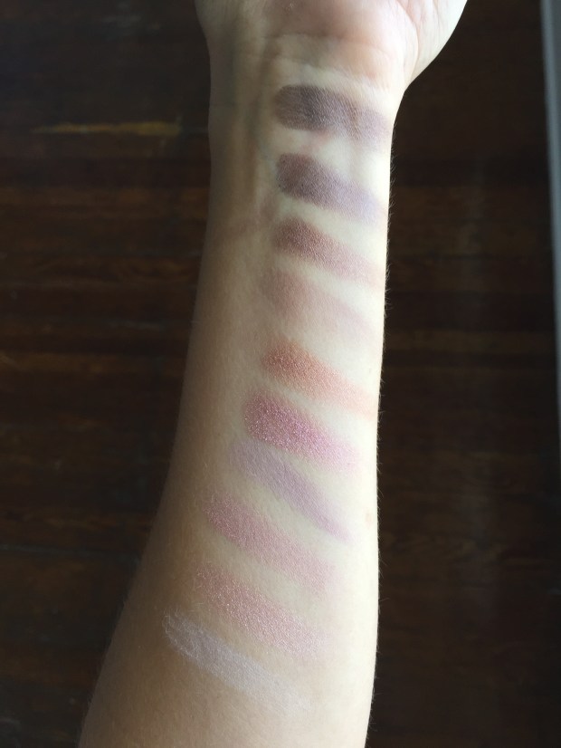 I have already reviewed the Elf palette here, so I will not go into great detail on it in this post. In terms of dubbing it a “rose gold” palette, however, I would offer a word of warning. I typically expect anything labeled rose gold to be somewhat warm-toned, and this palette certainly leans toward cooler shades. That is by no means a negative; it just surprised me, as it wasn’t what I expected. If you’re a lover of rosy shades but find that most palettes are too warm for you, order this palette now! You will probably love it. But if you’re expecting a warm-toned palette, you might be disappointed. The shades are really beautiful, nicely pigmented, and consistent, but most looks that you can create would veer cool. The Elf palette does, however, have that true rose gold shade that I’m looking for–a nice neutral-toned rose gold shimmer, great for daytime and work.