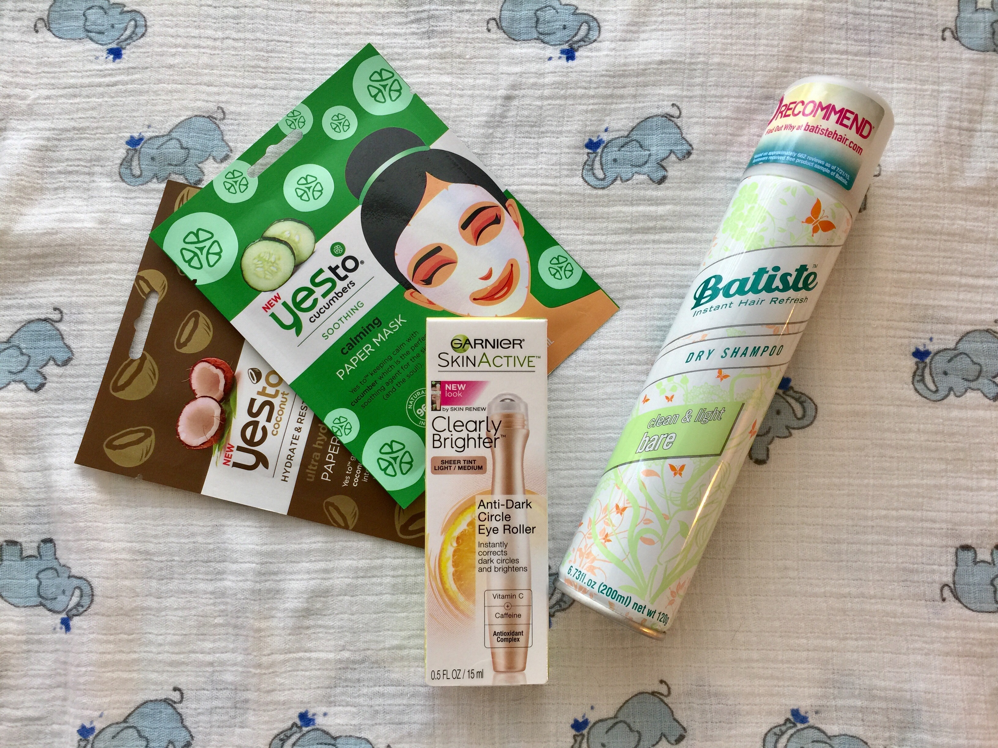 I chose a Garnier Skin Renew Anti-Dark Circle Eye Roller, two sheet masks, and a can of dry shampoo. No matter how much I hunt for the perfect eye cream, one that de-puffs and brightens, I always return to my Garnier eye rollers. They are amazing–they depuff my eyes in minutes, moisturize and brightern with Vitamin C, and sink in quickly so I can apply concealer without worrying that it’s going to slip away. I’ve always used the clear version in the green tube, but I’ve recently discovered this version, which acts as a de-puffer and brightener but also provides some coverage. For a new mom, this is perfect. I can wear this without any makeup and it doesn’t look like I put on concealer only, a problem I often have when I apply a full coverage product on bare skin. My eyes look brighter and more awake, and I can apply it under foundation and skip concealer, or put more concealer on top if I want more coverage. It is versatile, easy, and it works.