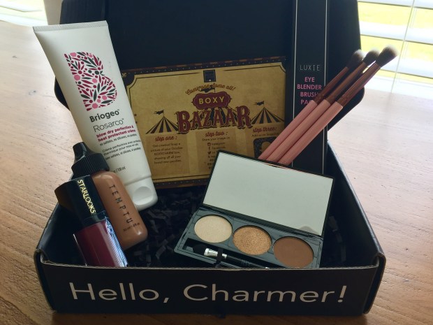 Boxycharm has done it again. This month’s Boxy Bazaar themed-box was an excellent collection of products, with enough variety and innovation to push me out of my comfort zone and make me try a liquid bronzer and foiled gold eyeshadow! Once again, Boxycharm has reminded me why I’m so glad I subscribed!
