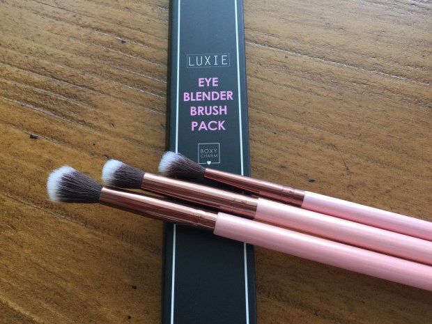 Luxie Brush Set: We got three brushes this month! I am so excited. I love the Luxie Small Tapered Blending Brush I received in an Ipsy bag, so I was thrilled to try this set. It was compiled especially for Boxycharm, but the brushes are sold separately on the Luxie website for $12 each. It contains a a #205 Tapered Blending Brush (largest, bottom in photo), a #229 Tapered Blending Brush (medium, middle in photo), and a #237 Blending Brush (smallest, top in photo). I love the rose gold design, and I also love that this is a cruelty-free brand. On first use I wasn’t too pleased–the bristles felt a bit stiff and poked my eyelid, they were not as soft as the bristles on my other Luxie brush. They did soften after a few uses, though, and now I really enjoy them. My only real criticism is that I wish the bristles on the smallest one were a bit shorter–it’s not the easiest brush to use to blend shadow in the outer corner, as the longer bristles just make me feel like I don’t quite have the control I’d like. The medium brush, though, is perfect. (Do I sound like Goldilocks here or what?) It is slightly denser than the others and is great for deepening the crease with a slightly darker shade. It is also the softest of the three. I absolutely love it. All in all, I think this is a great brush set, but if you were to only buy one, I would definitely recommend the #229.