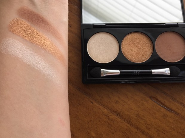 IBY Eyeshadow Trio in Three’s Company: I love this eyeshadow trio. The shadows are creamy and evenly pigmented, and they perform well on their own or in combination with other palettes. There is a perfect highlight shade with soft shimmer, a warm matte medium crease shade, and a stunning-yet-wearable gold shade. It is somehow foiled-looking yet daytime appropriate. I think this is because it is sort of a burnt or muted gold despite the shimmer. This is a great trio, but I wish it were a quad so there was one darker shade to deepen the outer corner–I did have to pull in a matte black for this. It worked fine on its own, but I wanted a little more depth. It is a little expensive at $19, but if you want a good day-to-night gold shimmer, it may be worth it to you.